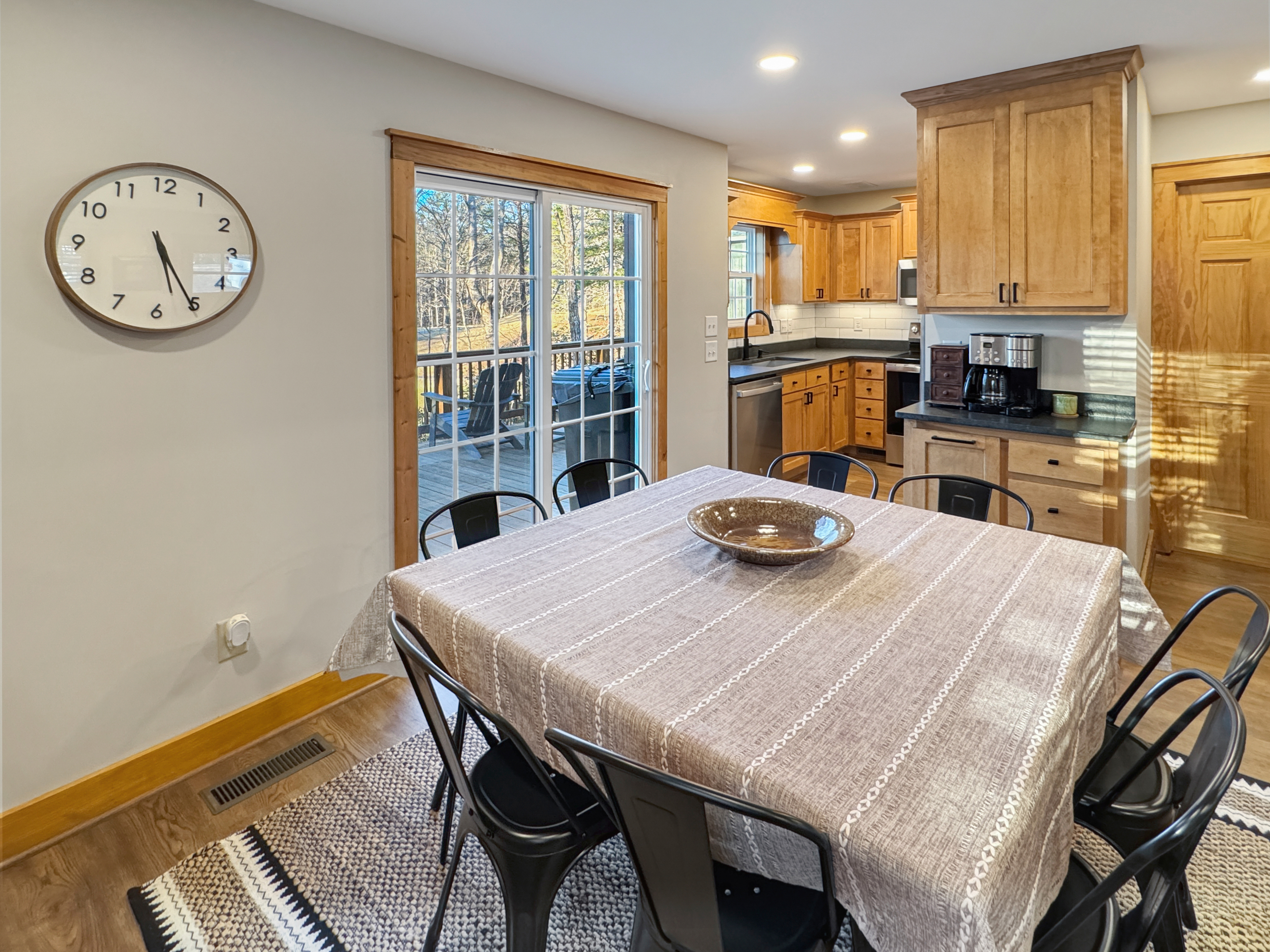 Start your morning with coffee on the private back deck, overlooking the peaceful golf course and surrounding woods. In the evening, gather in the sun-drenched living room where a cozy fireplace creates an inviting atmosphere for connection. The modern, fully equipped kitchen—complete with stainless steel appliances—makes preparing group meals a delight.